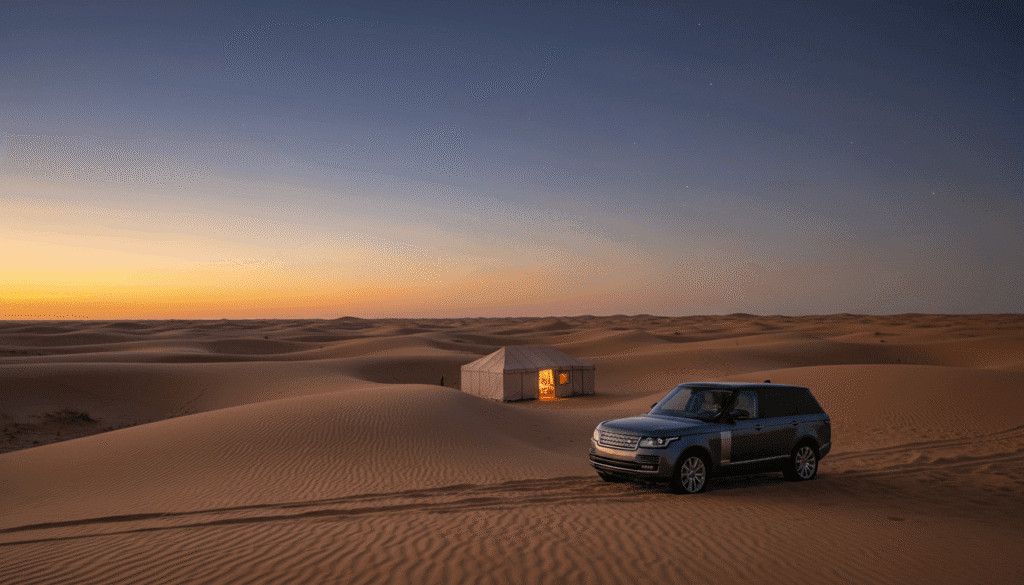 What are the accommodations like in a luxury desert camp?